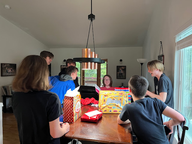 He has since cut his hair, but I love this picture of them! Cade also has a good friend Moroni and the three of them often hang out. He also has a good cohort of friends at school, and he had them all over for his 16th birthday. That's right, he's 16!!